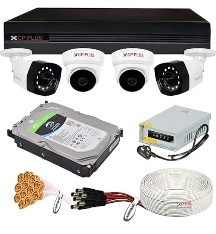 CP Plus 5MP, 2TB Storage, 4 Camera Combo Kit with (4Ch DVR, 2 Dome 2 Bullet Cameras, 2TB HDD, Power Supply, 90Mtr Cable, Audio Mic and Connectors) 5 Mega Pixel CCTV Security Camera Set, 19″ Monitor, 1 Pic USB Mouse